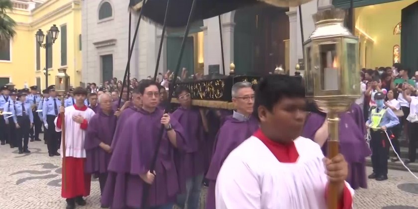 The Procession of the Dead Lord once again travelled through the streets of Macau this Good Friday.The annual tradition was attended by thousands of people accompanying the faithful who carried the statue of Jesus Christ in a coffin through the streets around the Cathedral.