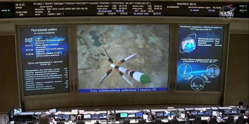The Roscosmos cargo spacecraft is carrying about three tons of food, fuel, and supplies for crew aboard the International Space Station. The Progress spacecraft is expected to take just over two days to reach the International Space Station. Automatic docking is scheduled for about 10:49 p.m. on Thursday.