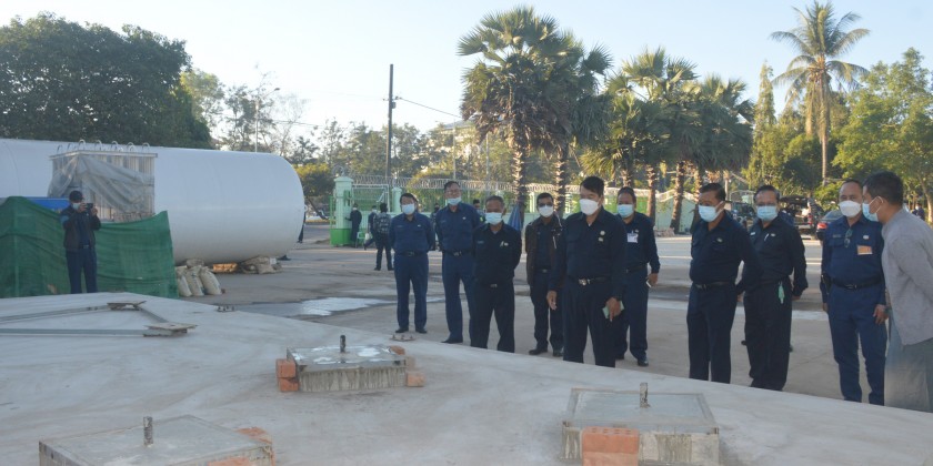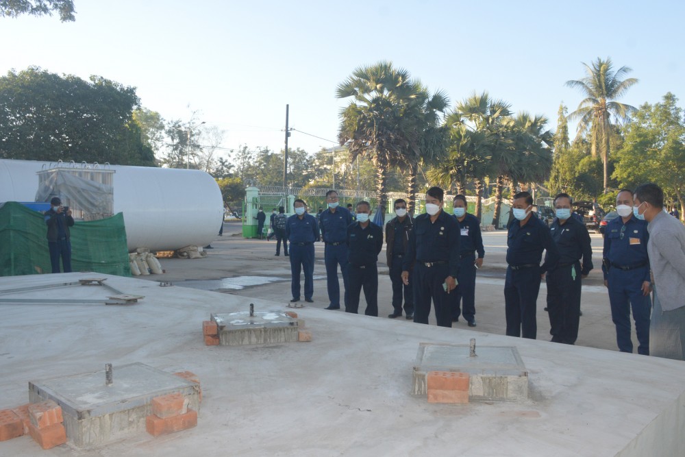 Chairman of Yangon City Development Committee (Mayor) U Bo Htay together with officials visited Development Administration office in Mingaladon Township on Friday and inspected installation of 15-ton liquid oxygen tank.