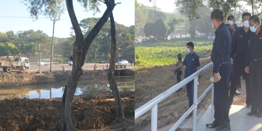 The Mayor and party then looked into digging of spillway and conduit at the Mingalar Lake in Mingaladon township, earth leveling to construct pedestrian lane and beautifying tasks.