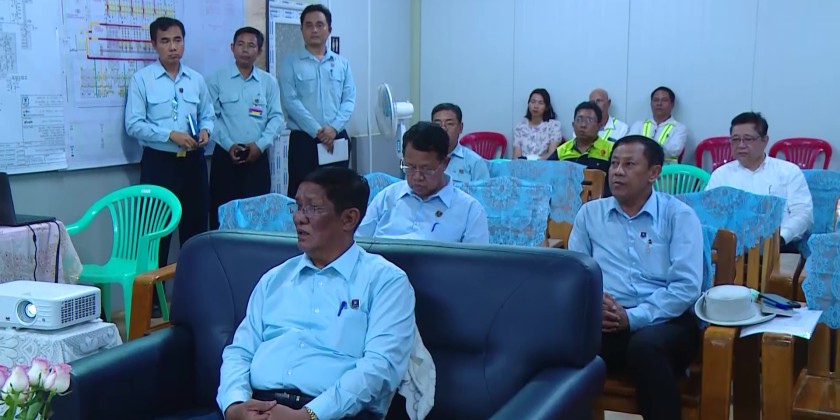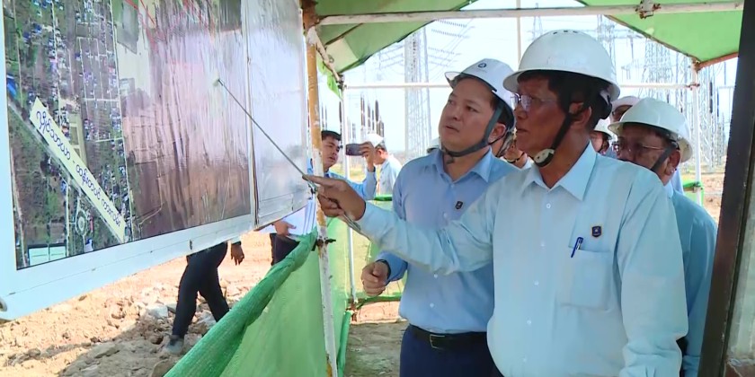 Union Minister for Electric Power U Nyan Tun, together with departmental officials, inspected the progress of the construction project of the 500 kV Hlaing Thaya (West University) Substation in Yangon Region on Saturday.