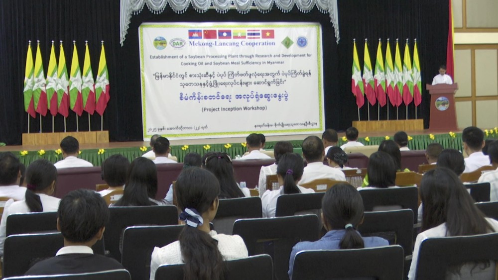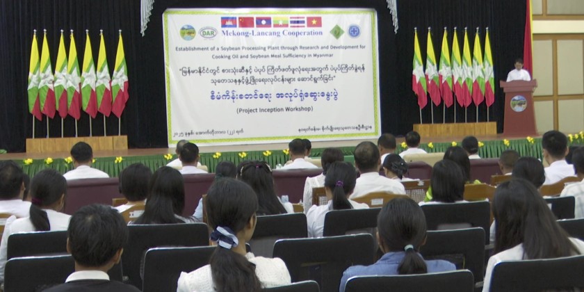 The Project Inception Workshop for the "Conducting Research and Development for Soybean Crushing to Ensure Sufficiency of Cooking Oil and Soybean Meal in Myanmar" project, to be implemented with the (2025) Mekong-Lancang Cooperation Special Fund, was held at the Navarat Hall of the Department of Agricultural Research in Yezin, Zeyathiri Township, Nay Pyi Taw on October 22.