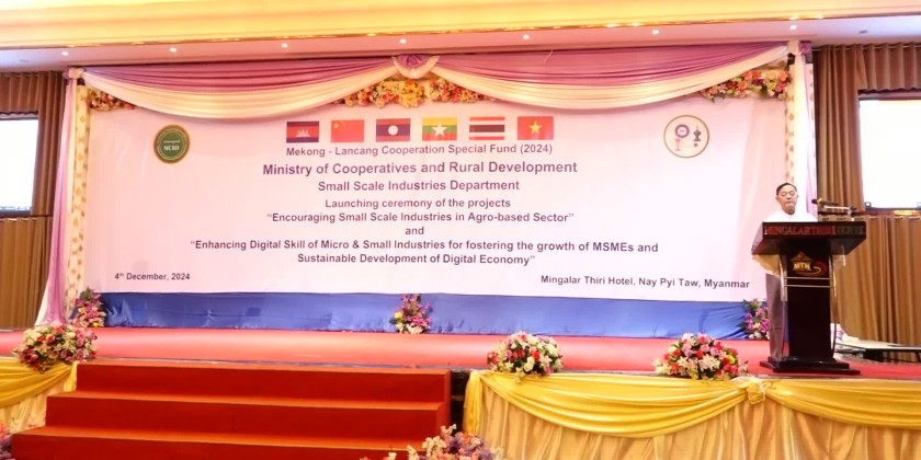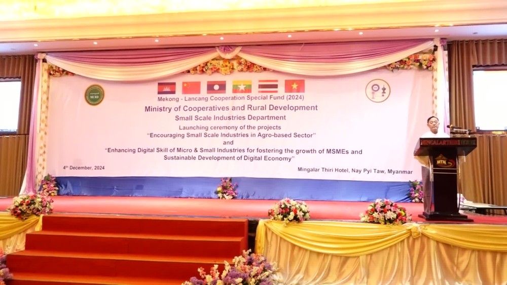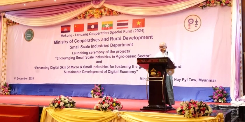 In his address, the Union Minister U Hla Moe emphasized that the ministry is striving to promote the development of small-scale industries, create job opportunities for rural populations, and foster small-scale production businesses based on raw materials from rural areas, in line with the ministry’s objectives. He explained that the Small-Scale Industries Department is implementing two projects under the Mekong-Lancang Special Fund 2024 including “Encouraging Small Scale Industries in Agro-Based Sector” and “Enhancing Digital Skill of Micro & Small Industries for fostering the growth of MSMEs and Sustainable Development of Digital Economy”.