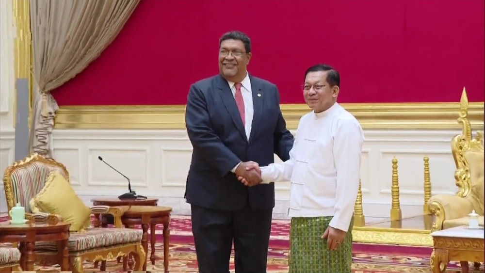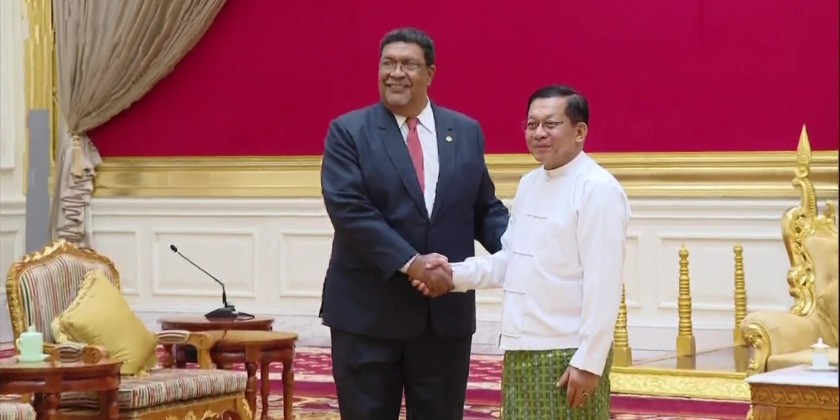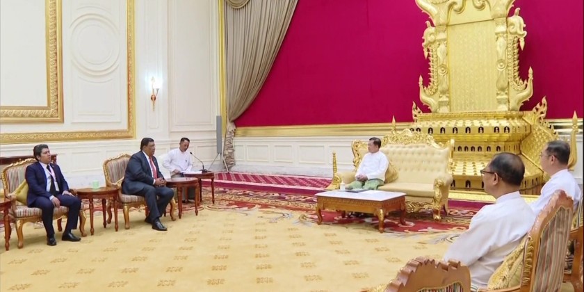 President U Min Aung Hlaing received Foreign Minister Mr. Valdrack Jaentschke of Nicaragua and party at the Presidential Guest House on Friday. They discussed matters on diplomatic relations between the two countries and promoting cooperation for further progress.