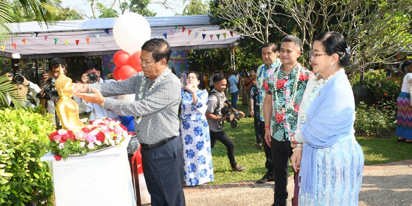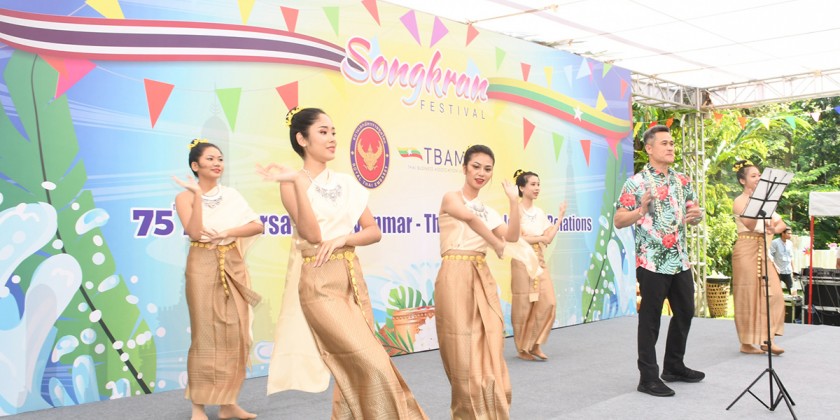 Thai traditional Songkran Festival took place at the Residence of Thai Ambassador to Myanmar on Wednesday. The celebration was held to commemorate the 75th anniversary diplomatic relations between Myanmar and Thailand.