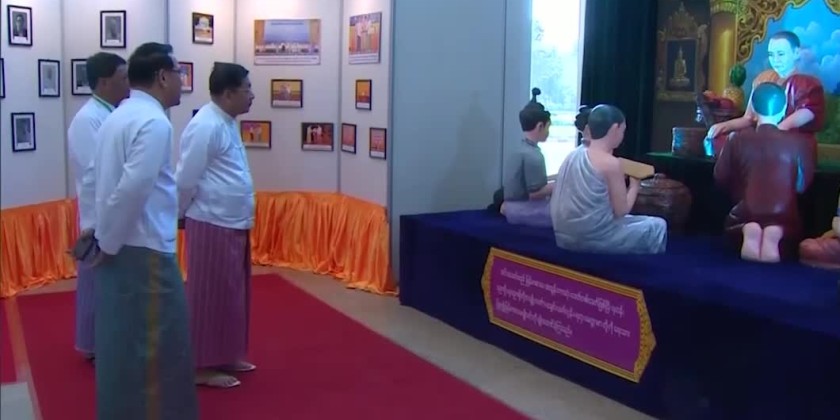 Prior to the event, the Prime Minister wife formally opened the commemorative booth of the Diamond Jubilee National Literary Award, and viewed the displays of prize winning books, photos of awardees and their biographies as well as books and periodicals and booths on development of Myanmar Literature in Innwa Era and literary works.