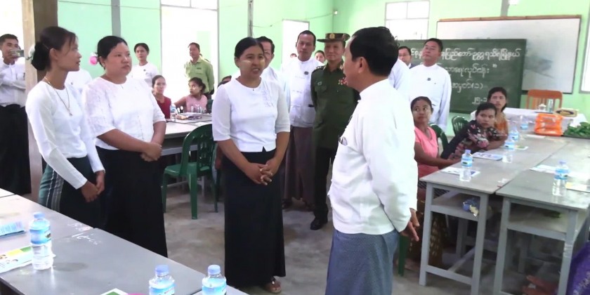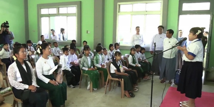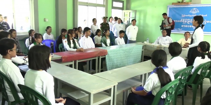 Following this, the Nay Pyi Taw Council Chairman and party encouraged the teaching and learning group which is a part of the continuous educational program, met with volunteer instructors and supervisors who are dedicated to teaching literacy and encouraging students, cordially greeted them and provided stationaries, supplemental foodstuff and cash assistance at Sub Basic Education High School (Shwe Nant Thar) in Uttarathiri Township. The Council Chairman and party also encouraged the students who were reading at the school library, donated books and periodicals and coordinated requirements.