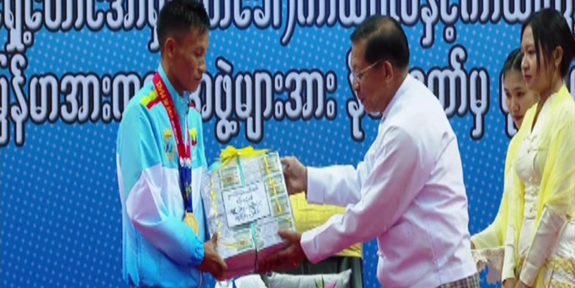 This was followed by the presentation of honorary cash awards to the winning athletes, coaches, and team managers at the 12th ASEAN Para Games and Southeast Asian Body Building and Body Physique Championship by the Prime Minister, Joint Secretary Lt-Gen Ye Win Oo, council members, and senior military officers.