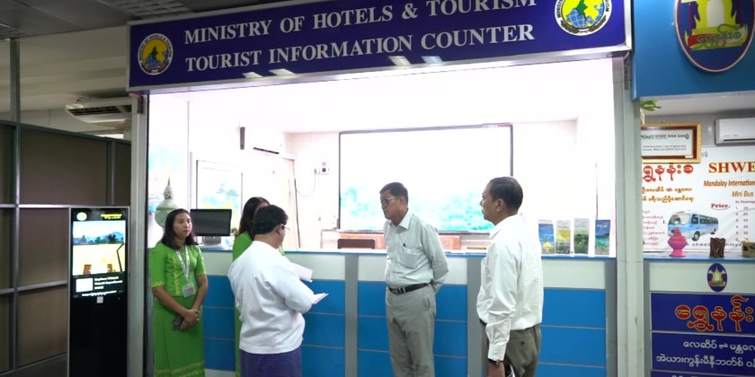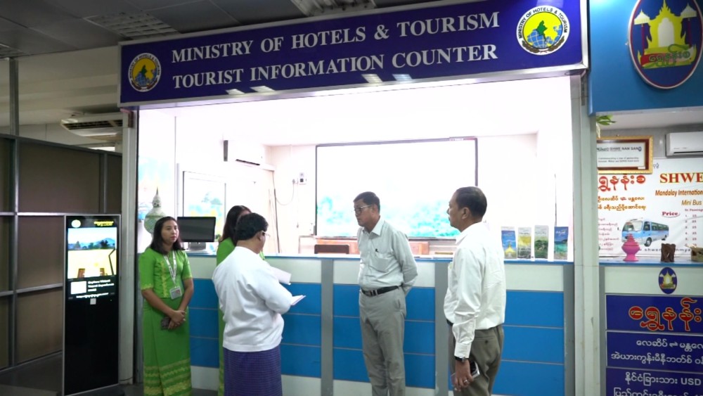 The Union Minister inspected the information counter at Mandalay International Airport, ensuring smooth services for local and international travelers. He also met with hotel owners to discuss rapid repairs of earthquake-affected buildings and improving guest facilities. At the Ministry's regional offices, he encouraged staff to follow official guidelines and supported employees affected by the quake.