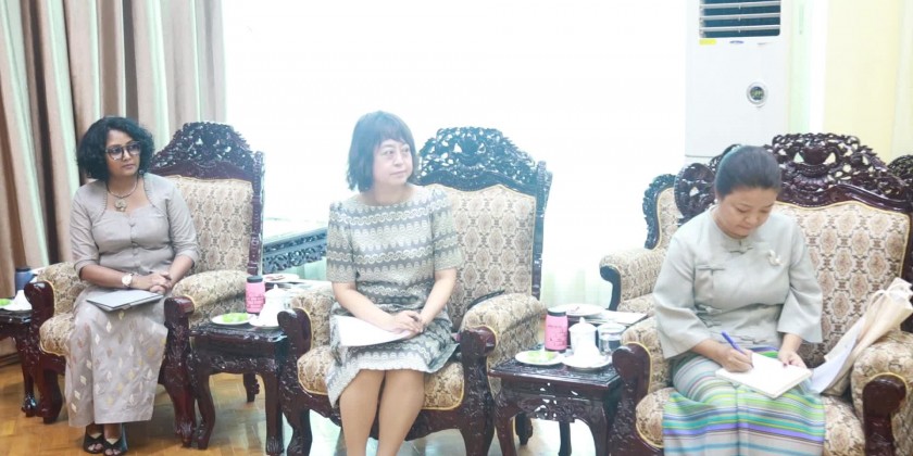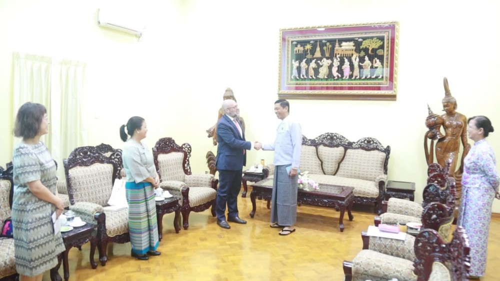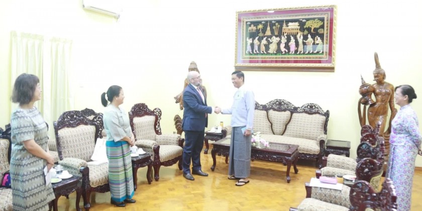 The Union Minister for Social Welfare, Relief and Resettlement Dr. Soe Win received a UNFPA delegation led by the resident representative Mr. Jaime Nadal Roig at the Ministry in Nay Pyi Taw in the morning on 17th July.