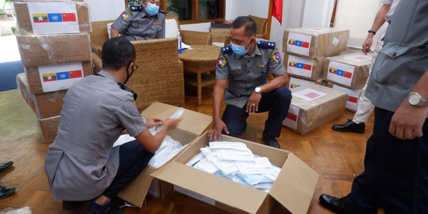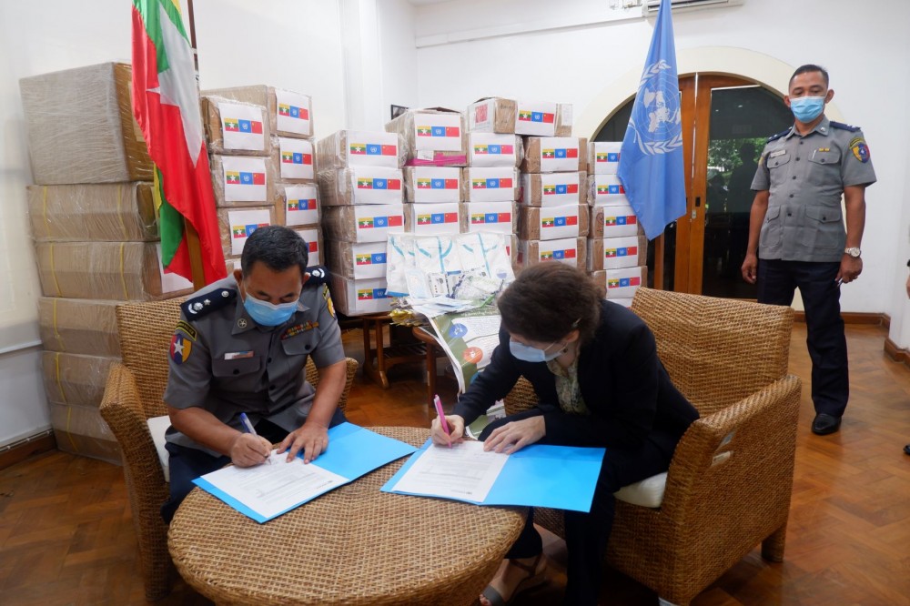 UNODC provided the Myanmar Police Force with 20,000 surgical masks, 200 pairs of goggles, 8,000 pairs of disposable gloves, 160 protective suits and 60 contactless temperature scanners, which will now be used by frontline border officers at 13 land border crossings.
