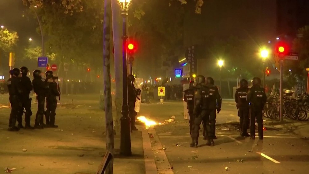 in the Spanish city of Barcelona, protesters set cars on fire and threw petrol bombs at police on Wednesday night. the unrest was sparked by the sentencing of Catalan separatist leaders who had sought to declare an independent state.
