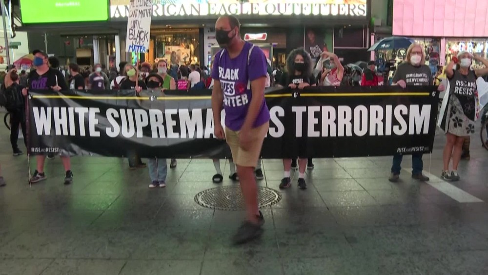 Several hundred peaceful demonstrators gather in New York's Times Square on Friday over the death of a black man that police hooded and forced face down on the road, according to the video footage that prompted a probe from the state's attorney general. Under a steady rain, demonstrators demand justice for Daniel Prude, whose family says he died on March 30 after being removed from life support, seven days after the police encounter upstate in the city of Rochester.