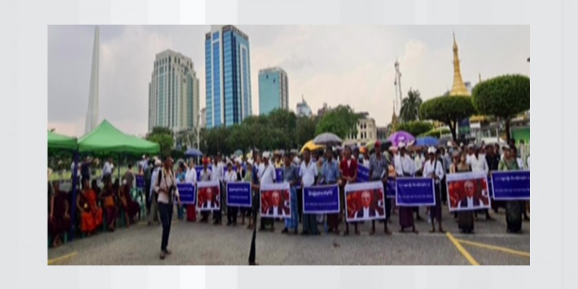 A protest led by nationalist activists against Timor-Leste and countries interfering in Myanmar’s internal affairs took place in front of the City Hall in Yangon on Wednesday.
