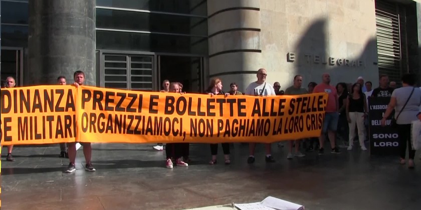 A few dozen protesters burnt gas and electricity bills in Naples city center on Friday to protest against the rise in energy and food prices.