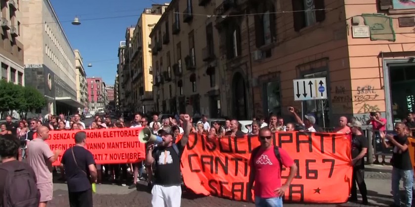 The demonstrators mainly belonged to the movement "Unemployed People of Scampia", a suburb of Naples. Protesters gathered in front of the central post office and later marched towards the town hall.