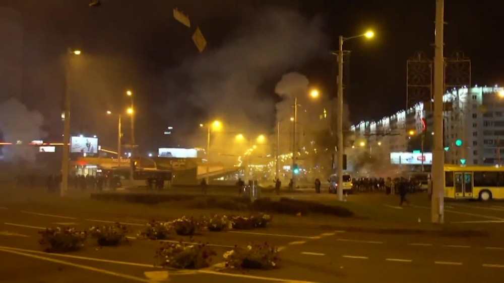 Protesters clashed with police on Monday night as protests continued in Belarus for a second straight night after the official results from weekend elections gave an overwhelming victory to authoritarian President Alexander Lukashenko, extending his 26-year rule until 2025.