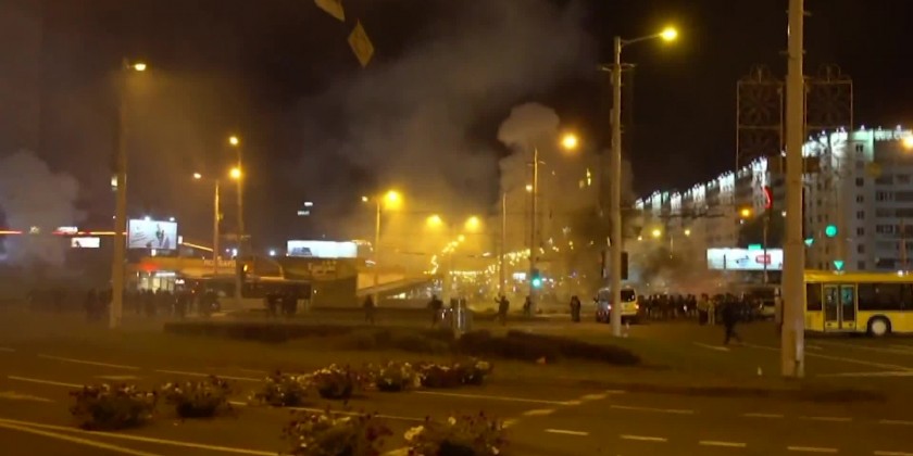 On Monday evening, scattered groups of opposition supporters began gathering in downtown Minsk, chanting "Freedom!" and "Long live Belarus!" A heavy police contingent blocked central squares and avenues, moving quickly to disperse protesters and detained dozens. Dozens were injured, when police brutally broke up protests.