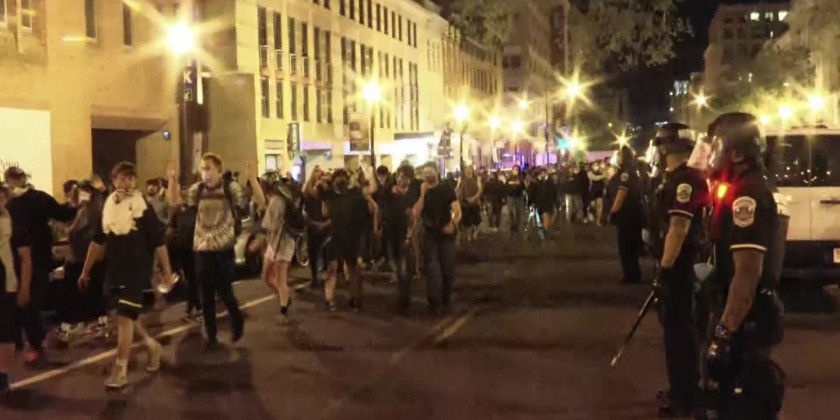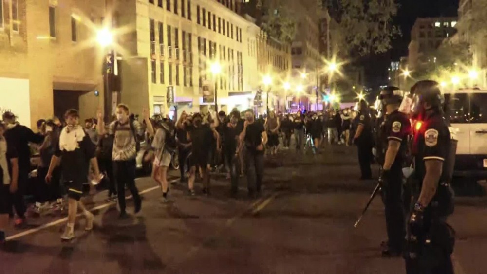 Protesters marched on the National Mall in Washington DC on Monday. Protests have continued in cities across the U.S. on Monday, following the death of George Floyd. There was no apparent attempt to disperse the protesters even though a 7 p.m. curfew had passed. Multiple helicopters buzzed overhead, a relative rarity in the District of Columbia, which is normally a no-fly zone for helicopters and drones.
