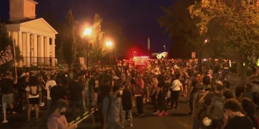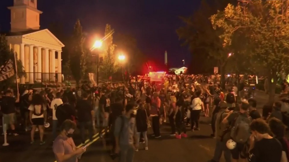 Demonstrators gathered in Washington DC on Thursday evening before US President Donald Trump was due to accept his party's renomination at the White House. The protesters marched along the Black Lives Matter (BLM) Plaza toward Lafayette Park carrying anti-Trump and BLM banners and signs. Trump was breaking with tradition by using the executive mansion as a political backdrop and defying pandemic guidelines to address a tightly packed, largely maskless crowd.