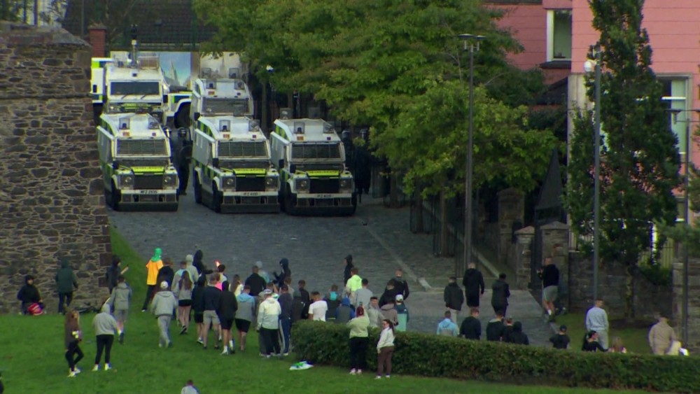 Ten police officers have been injured and one person arrested during disorder in Londonderry/Derry, the Police Service of Northern Ireland (PSNI) has said.