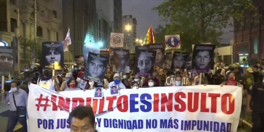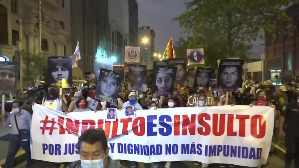 Hundreds of Peruvians took to the streets of Lima on Saturday to protest against the Constitutional Court's decision to free former president Alberto Fujimori through a pardon. Fujimori was sentenced to 25 years in prison for serious human rights violations, including 25 murders.