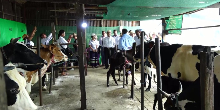 They also observed a "Thu" motorcycle repair business operated by a trainee in Zayatkwin Village, Hlegu Township, Yangon Region. Additionally, they reviewed the upgrading of the road connecting Yemon Village to the Yangon-Bago Road into a concrete road in Hlegu Township, Yangon Region, and inspected a group-based dairy cow farming project funded by the Rural Business Fund (RBF) in Ye Su Village, Hmawbi Township.