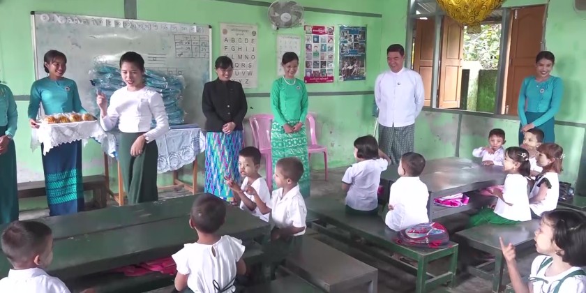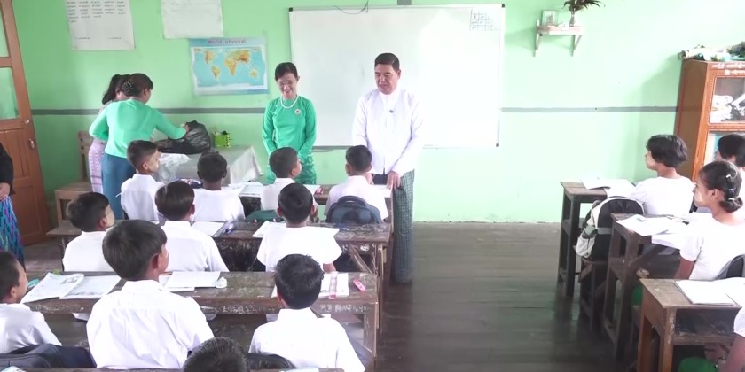 After that, Chief Minister U Htein Lin, his spouse, and responsible officials visited Sittwe’s Kyaungtet Lan ကျောင်းတက်လမ်း Ward Basic Education Post-Primary School to observe students learning peacefully. They offered encouragement and provided school supplies and food items to the students.
