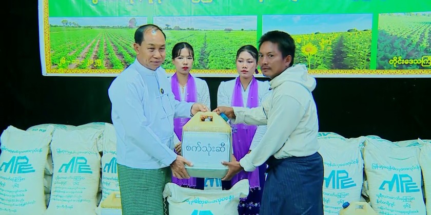 Following this, the Region Chief Minister and Region Government members distributed inputs of urea fertilizers and agricultural tractor fuel to 300 local farmers from 12 villages in Monwya Township.