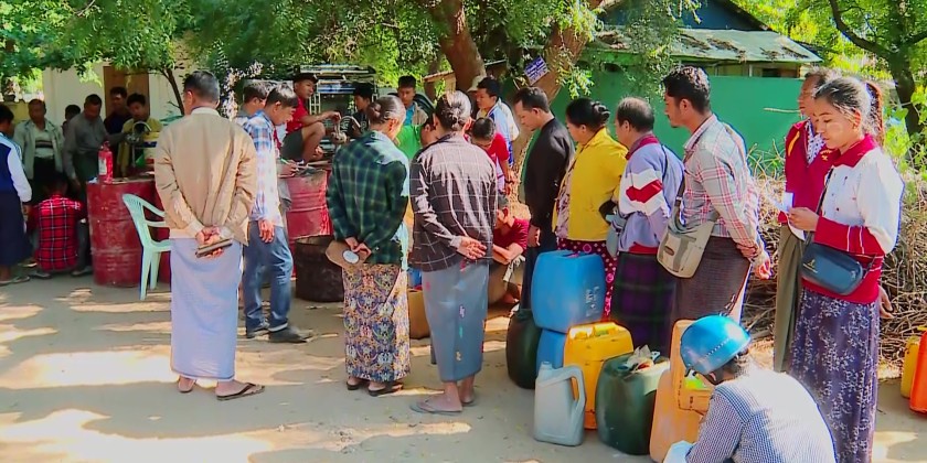 Later, the Region Chief Minister and officials observed the distribution of agricultural tractor fuel and cooking oil to the 300 local farmers from the 12 villages in Monwya Township within the office compound.