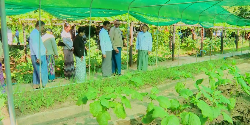 Then, the Region Chief Minister and responsible officials also inspected the cultivation of kitchen garden crops on the premises, which is for the welfare of the staff serving at the Region Department of Agriculture office and their family members, and coordinated with responsible persons to address necessary requirements.