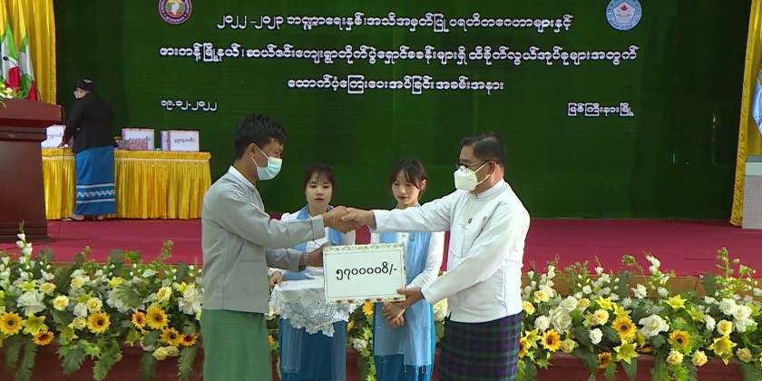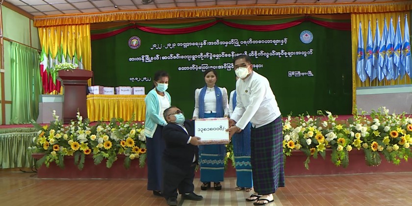 A ceremony to provide cash assistance for charity centers recognized by the Department of Social Welfare for 2022-2023 financial year in Kachin State and vulnerable groups from Sae Zin village in Phakant township was held at the Manaw Shwe Pyi Hall in Myitkyina on Monday.