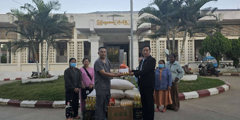 In providing assistance, Chairman of the Wa Self-Administered Division Administration Body provided 1 million kyats to township medical superintendent and 25 staff. Likewise, Township Administration Body member provided 500,000 kyats, rice bags, cooking oil and egg to the staff and encouraged them. After coordinating the requirement, Chairman and party assisted foodstuff to 7 patients and provided 20,000 kyats each.