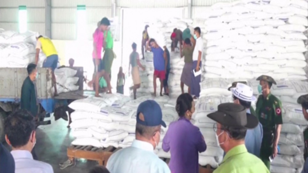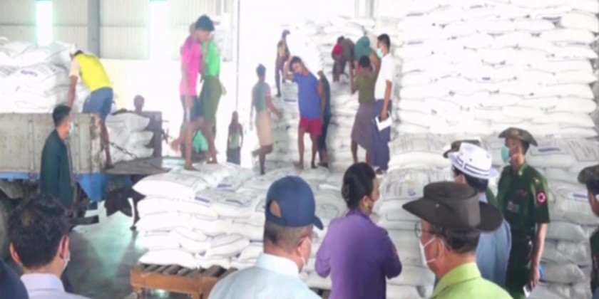 Union Minister for Social Welfare, Relief and Resettlement Dr Thet Thet Khaing, Chief Minister U Soe Thein, Commander of Yangon Region Command Maj-Gen Nyunt Win Swe and officials oversaw the distribution of rice and wheat to the people.