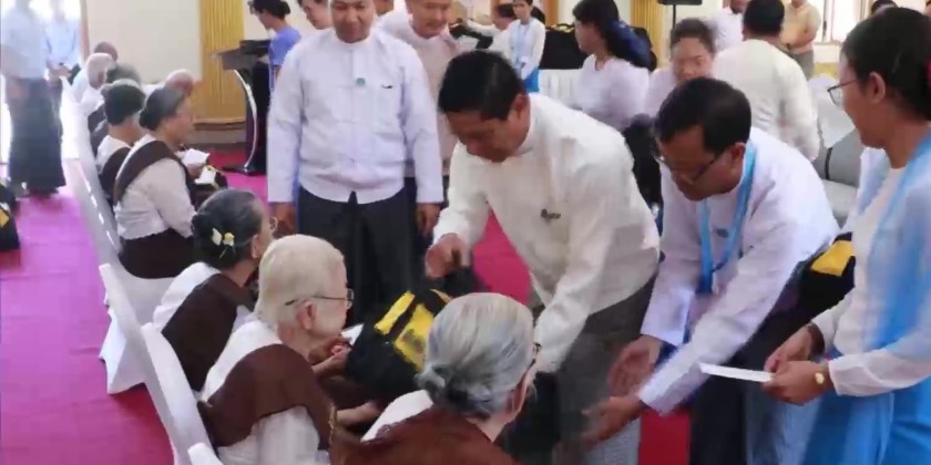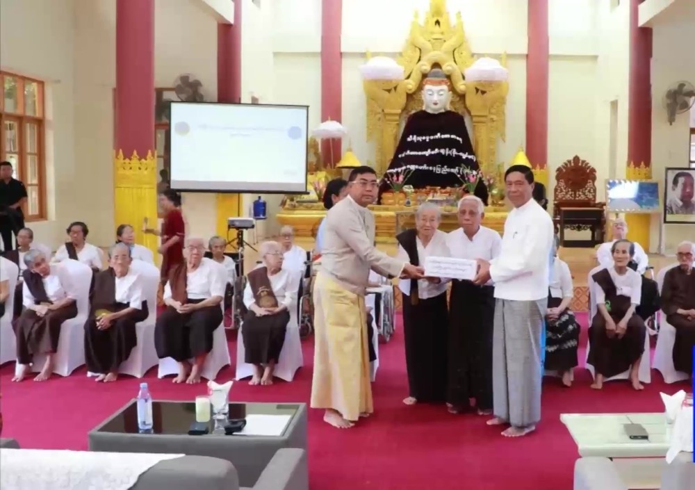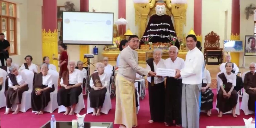 The Union Minister provided direct cash assistance of 50,000 kyats per person to the elderly residents of the homes, and also distributed Standard Dignity Kits.