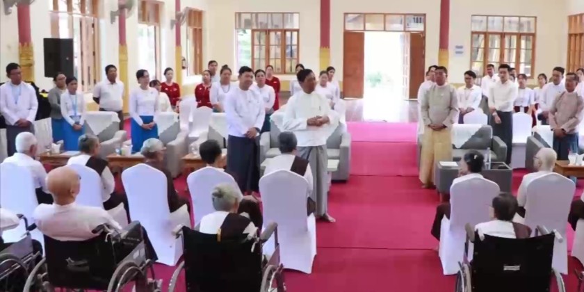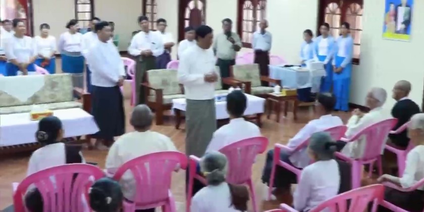 Union Minister for Social Welfare, Relief and Resettlement Dr. Soe Win visited and provided assistance to the elderly residents at the Aye Nyein Chan Thar Gila Na Home for the Aged (Pyinmana), the Pyinmana Home for the Aged, and the Karuna World Home for the Aged on February 10. The Director-General and responsible officials, administrative committee members for each home, and home staff attended.