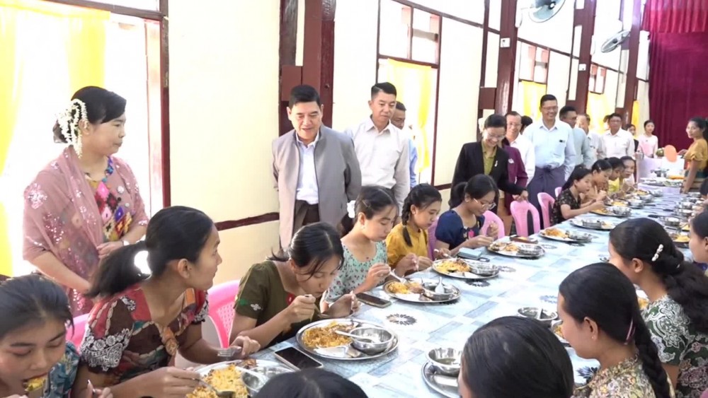 Rakhine State Chief Minister U Htein Lin, accompanied by his wife in her capacity as the patron of the State Women's Affairs Federation, the Advocate-General of the State High Court, members of the State Government and their wives as well as departmental personal attended the provision ceremony of supplies to the teachers and students of the Nursing and Midwifery Training School (Sittwe) on Saturday.