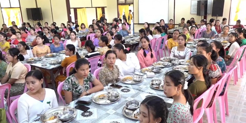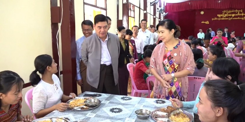 The Chief Minister and wife firstly presented basic foodstuffs provided by the Rakhine State government to the Training School.