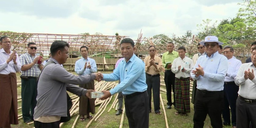 The Chief Minister also inspected new temporary housing construction sites for over 100 displaced families from Bamaw District and provided cash assistance to speed up completion before the rainy season. They also inspected housing areas being built for displaced families from Chipwi and Sawtlaw and gave further assistance.