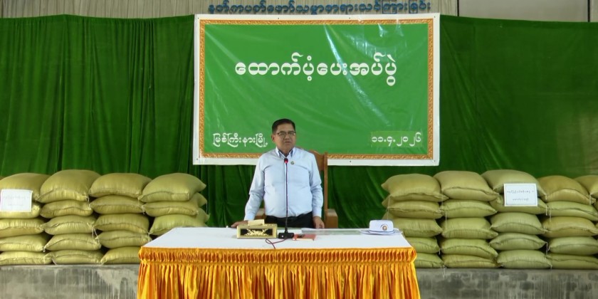 The government provided aid including rice and cooking oil for 68 households. The Chief Minister said the new government will continue supporting displaced families and encouraged them to report their needs to officials and hluttaw representatives. He also called for cooperation in peace and national unity efforts.