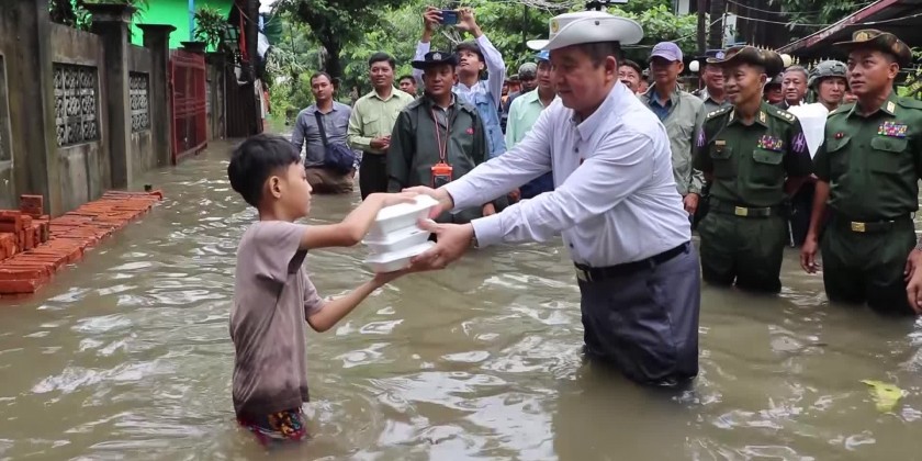 After that, the Chief Minister and party provided rice, edible oil, eggs, instant noodle and cash assistance to 184 flood victims in Aung Theikdi monastery Rescue Camp. He then inspected the flooding areas in Myoma 4 ward in Mudon Township and instructed the needs on systematic drainage system and throwing garbage.