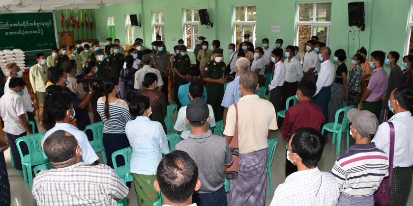 At the event, the Nay Pyi Taw Command provided rice, bean, cooking oil and salt worth over 3.7 million kyats for 105 displaced households in the townships in Dekhina district.
