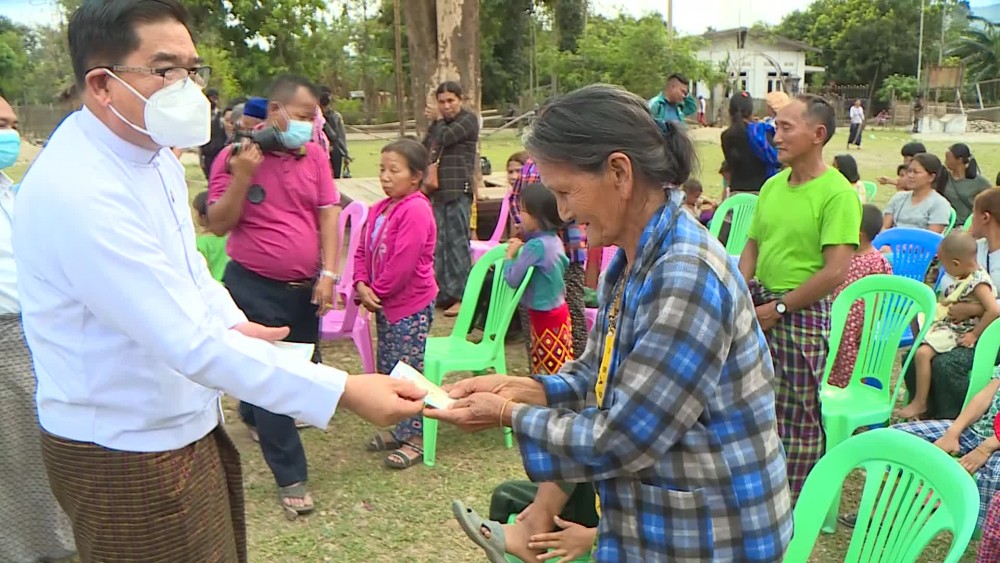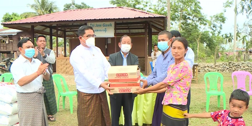 The Kachin State Chief Minister U Khet Htain Nan and officials met and encouraged the IDPs from Lon Shar Yan Village and sheltered in Ar Lan Village-tract U-Byit Village in Myitkyina Township and provided rice, foodstuffs and cash assistance in the afternoon on April 10.