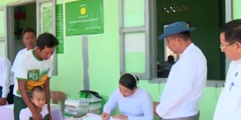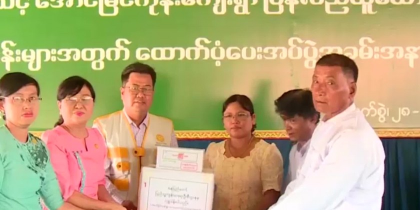 At the Aung Myin Kone village, the Nay Pyi Taw Council Chairman and officials provided rehabilitation materials and 15.5 million kyats to the affected people. They also viewed the process of school enrollment at the village basic education shcool and provided assistance to the students.