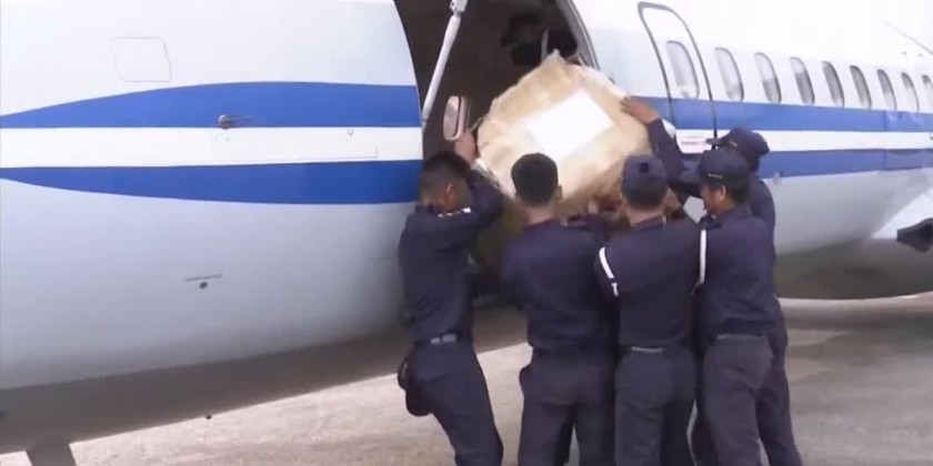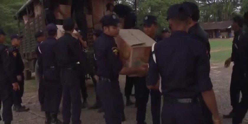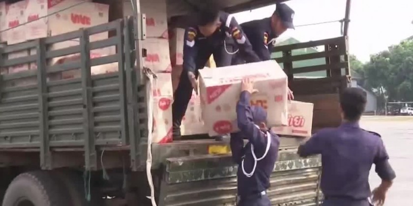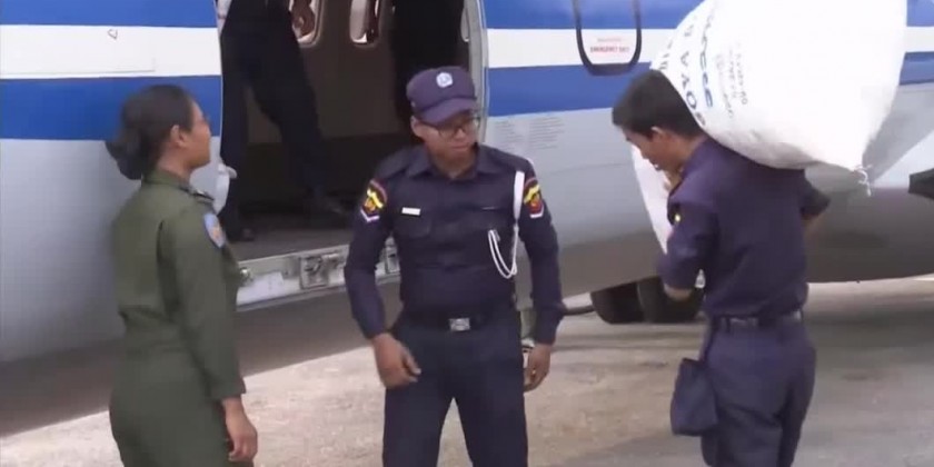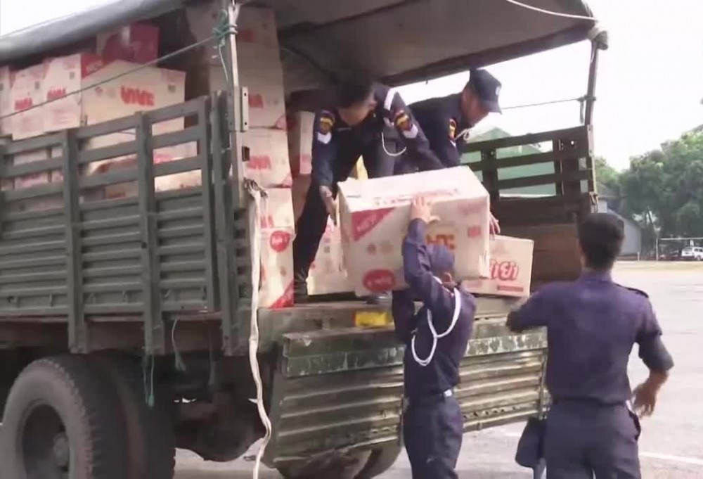 various kind of food items and clothes donated by families of Tatmadaw (Army, Navy and Air) were transported by Tatmadaw aircraft to Sittwe Airport via Nay Pyi Taw. Likewise, peanut bags, Atom communication devices, tea mix packets produced by Tatmadaw factories, beans and pulses, instant noodles, onion bags, duck eggs, solar torch lights, edible oil, vegetables, MPT communication devices, tarpaulins andbatteries donated by families of Tatmadaw (Army, Navy and Air) and ministries and relief aids were transported to Sittwe airport by Tatmadaw aircrafts for two times via Mingaladon airport in Yangon. The relied items arrived by the Tatmadaw aircrafts were accepted by officials and they will be delivered to relevant departments.