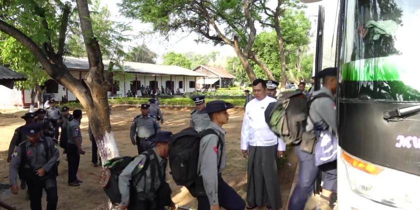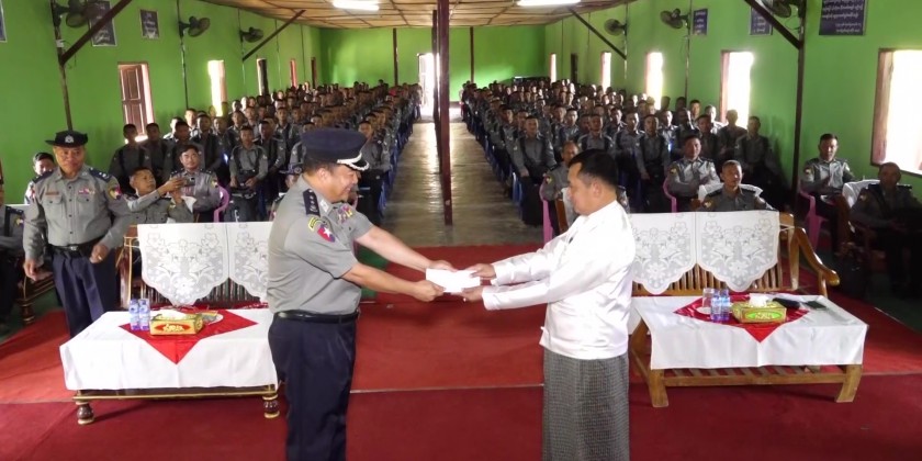 Next, the Chief Minister presented 20 million Kyats provided by the Shan State Government for 401 police members from No (4) Police Training School of Myanmar Police Force, 3 million Kyats by Shan State Police Force and the responsible officials accepted the cash assistance. Then, the Chief Minister and party saw off the members of police force who are leaving by buses.