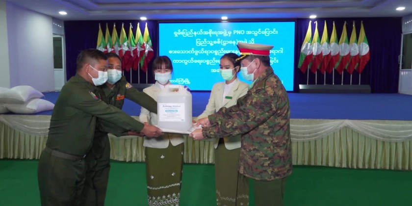 The Shan State Government provided rice, cooking oil and dried fishes worth 6.75 million Kyats and 3000 masks and 50 of 10 litter containers of hand sanitizer to the PNO transformed Pyithusit-militia unit (Local).