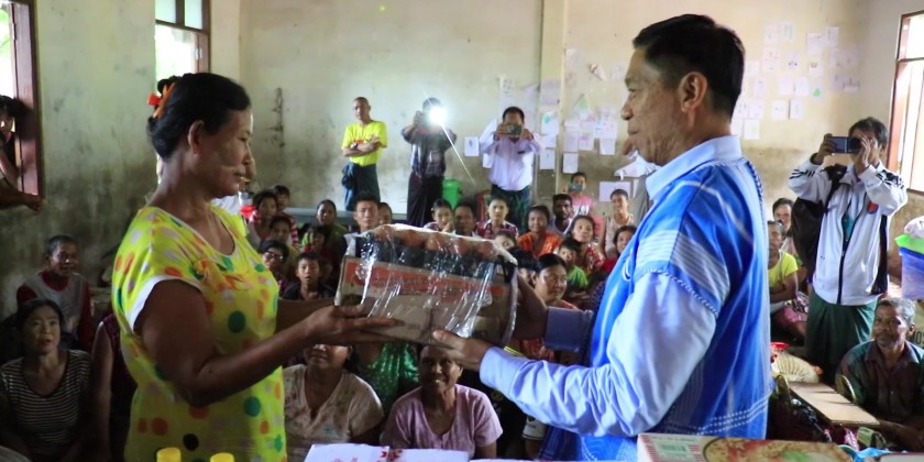 After that, they met flood affected households at the Dhamma Thukha monastery in Kyon Doe and provided cash and food stuff. During the inspection, the Union Minister provided over 31.2 million kyats for rice ration and instant noodles and eggs worth over 2.26 million kyats for 3,470 people of 704 households from 9 rescue camps in Hpa-an and over 6.76 million kyats for rice and foodstuff worth 842,240 kyats for 752 flood affected people of 172 households from 3 rescue camps in Kyon Doe township.