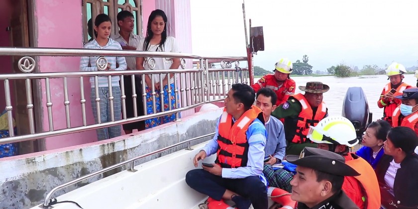 The Union Minister and party firstly visited low-lying areas of No. 5 ward in Hpa-an and viewed around water inundation at the houses and accommodating at the rescue camps and fulfilled the needs. Later, they visited rescue camp in No.5 ward in Hpa-an and encouraged 192 people of 47 households who are temporarily accommodated at the rescue camp and provided cash for rice and food stuffs.