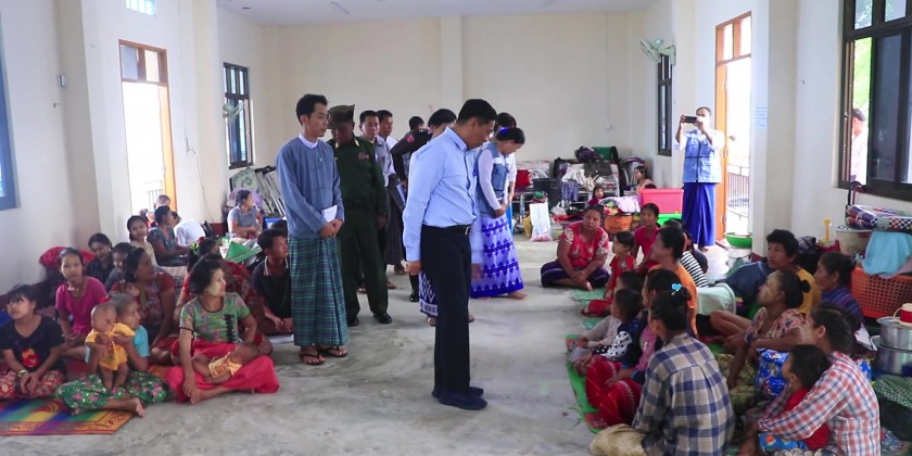 Union Minister for Social Welfare, Relief and Resettlement Dr Soe Win together with officials went to rescue camps for flood victims in Hpa-An on Wednesday morning and encouraged flood affected people who are temporarily accommodated at the camps and provided food stuffs.